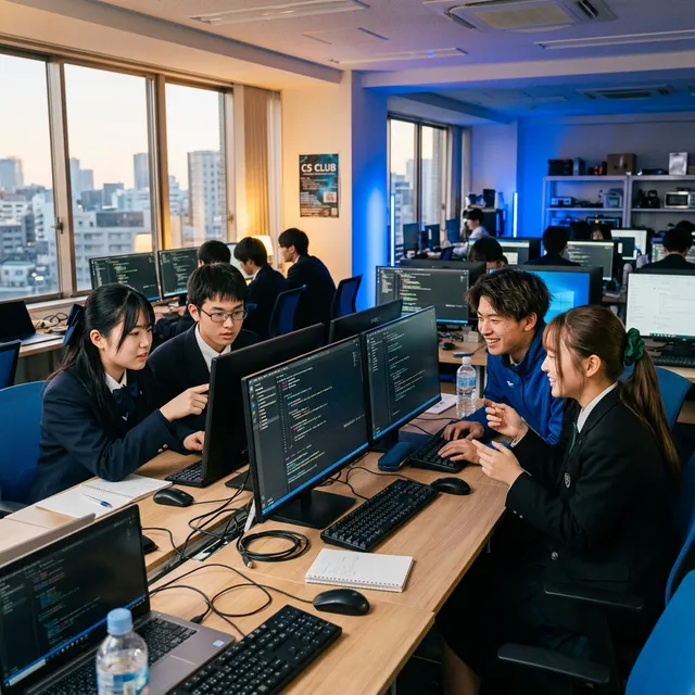 コンピュータ部では、基本操作から資格取得まで、先輩、後輩関係なくやさしく教えてくれるので、初心者でも安心して参加しやすい部活です。